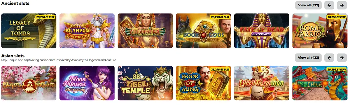 | Poskytovatelé | NetEnt, Microgaming, Play'n GO, Evolution Gaming, Pragmatic Play, Yggdrasil, Red Tiger Gaming, Big Time Gaming, Wazdan, Thunderkick a dalších 30+ |
