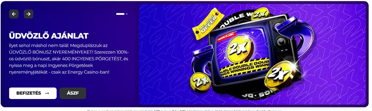 Üdvözlünk az Energy Casino Hungary oldalán, ahol a legjobb online szerencsejáték élményt kínáljuk magyar játékosainknak! Csapatunk büszkén mutatja be exkluzív játékválasztékunkat, nagyvonalú bónuszainkat és a kifejezetten magyar játékosoknak kialakított szolgáltatásainkat. Fedezd fel, miért választ minket több ezer magyar játékos, és csatlakozz közösségünkhöz még ma!