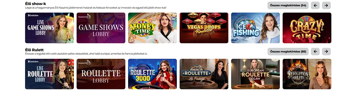 Izgalmas játékshow-k, mint a Crazy Time, Monopoly Live és Dream Catcher magyar kommentárral.