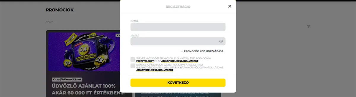 Regisztrálj mindössze 2 perc alatt és aktiváld 200%-os bónuszodat!