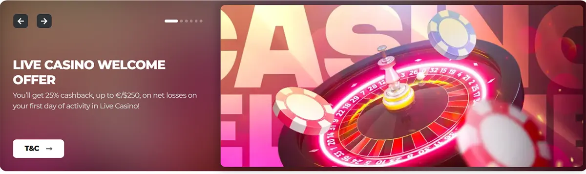 Mantemos várias promoções ativas durante toda a semana. Nossa promoção de recarga oferece 50% até €200 com requisitos de apostas de 30x.