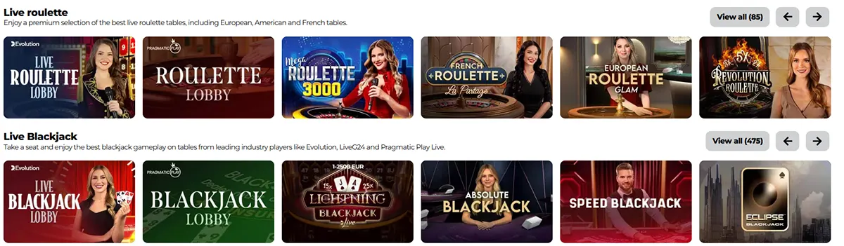 Nossos jogos ao vivo são fornecidos pela Evolution Gaming e Pragmatic Play Live. Estes são os líderes mundiais em transmissões ao vivo de cassino.